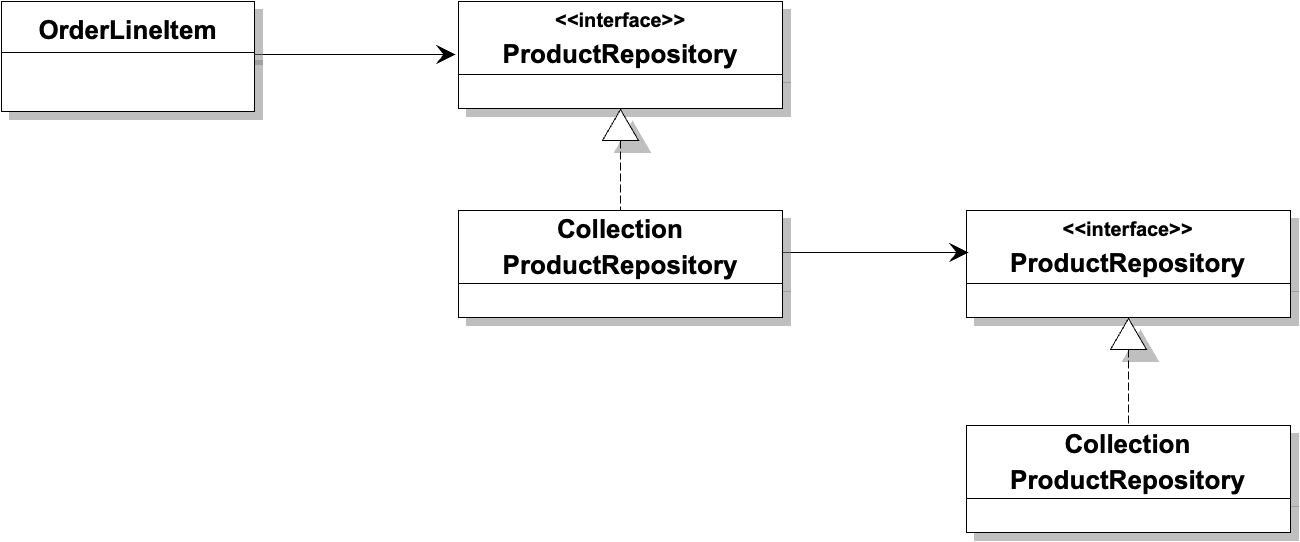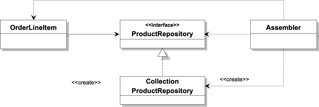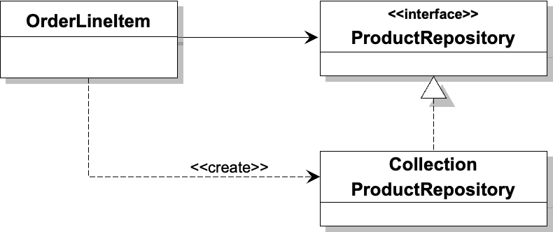 그림3 구성과 사용을 분리시킴으로써 OrderLineItem과 CollectionProductRepository 간의 직접적인 결합도를 제거했다.