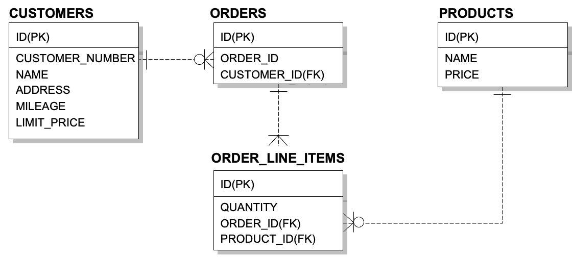 다음은 주문 시스템의 도메인 모델과 매핑될 데이터 모델이다.그림 3 주문 도메인의 데이터 모델