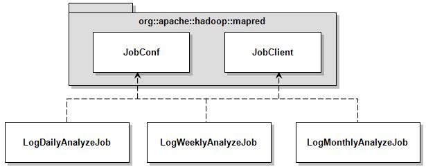 앞에서 예로 든 통계 서비스의 경우 일간 통계뿐만 아니라, 주간, 월간 단위의 통계 데이터 역시 사용자에게 제공하고 있다. 의존성을 끊기 전에는 <그림 6>에서 볼 수 있는 것처럼 일간, 주간, 월간 작업을 실행하는 클래스 모두가 JobConf와 JobClient에 의존하고 있었으며 입력 경로나 출력 경로 값 이외에 <리스트 1>에서 보인 대부분의 코드가 중복되어 있었다. 따라서 일간, 주간, 월간 통계를 테스트하기 어려웠을 뿐만 아니라 절차적인 방식의 설계와 코드 중복으로 인해 코드의 확장및 유지보수하기가 어려운 구조를 가지고 있었다.